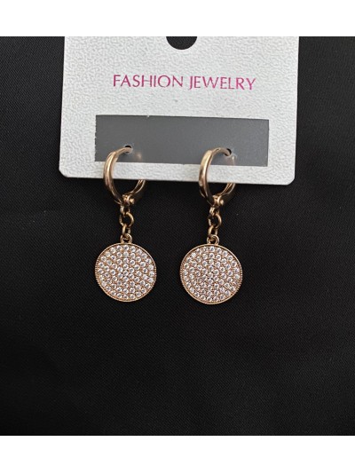 Сережки з камінчиками круглий замок золотого кольору 32598