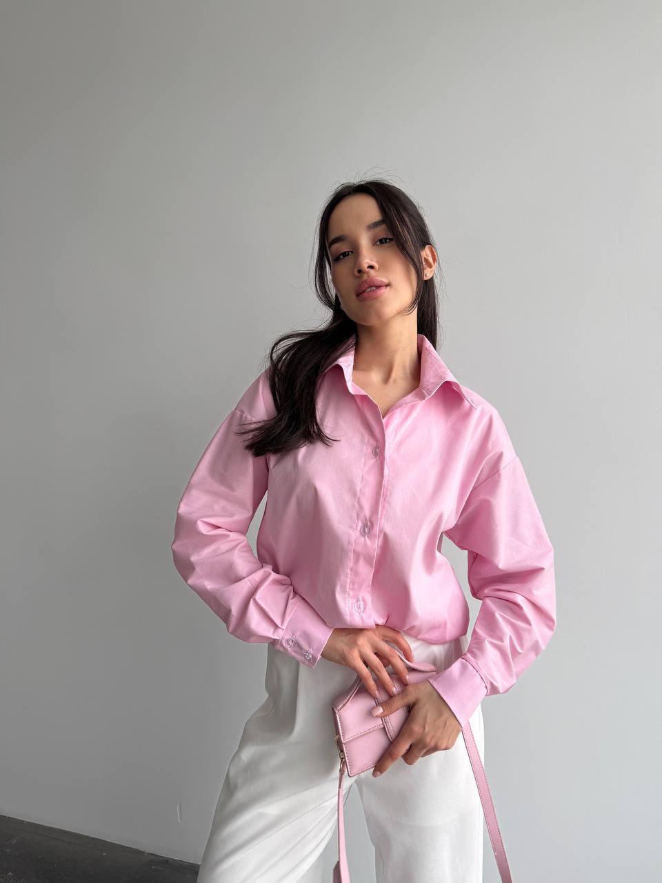 Базова, котонова сорочка оверсайз рожевого кольору 28844