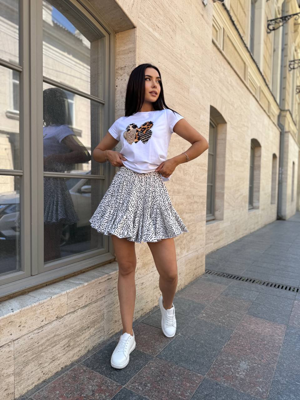 Базова жіноча футболка з леопардовими серцями бiлого кольору 31770