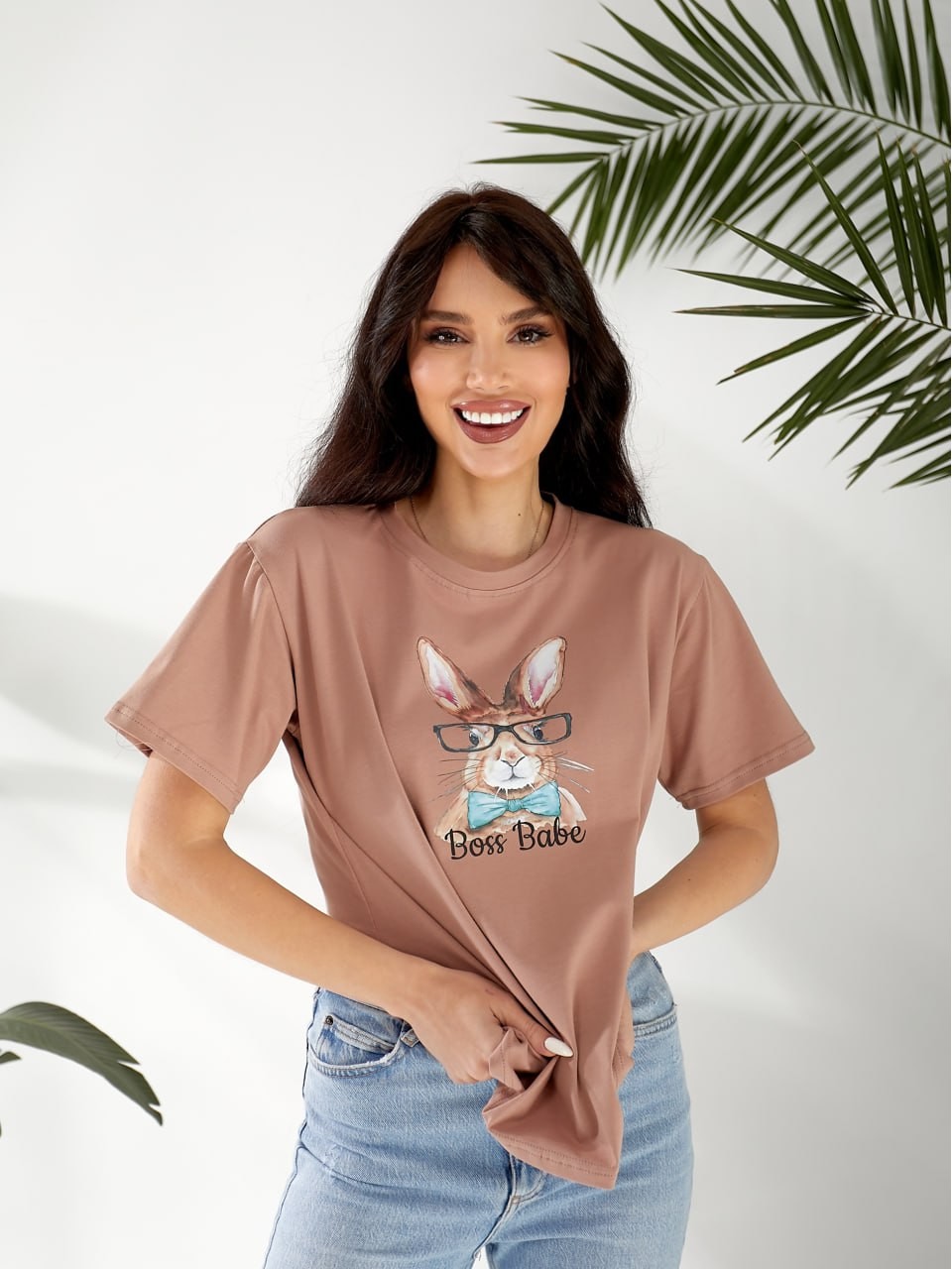Базова жіноча футболка з малюнком кавового кольору 32544