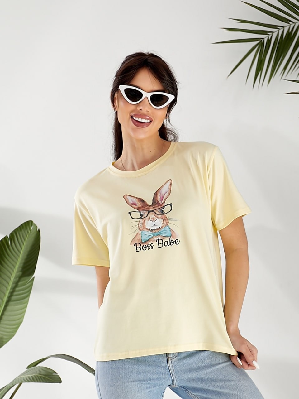Базова жіноча футболка з малюнком жовтого кольору 32548