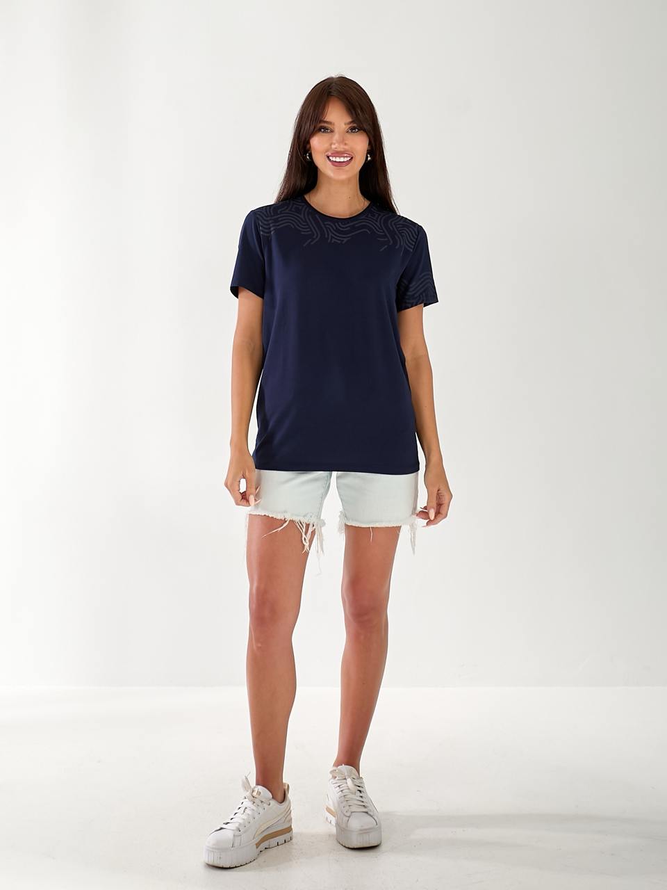 Базова жіноча футболка з візерунками синього кольору 33292