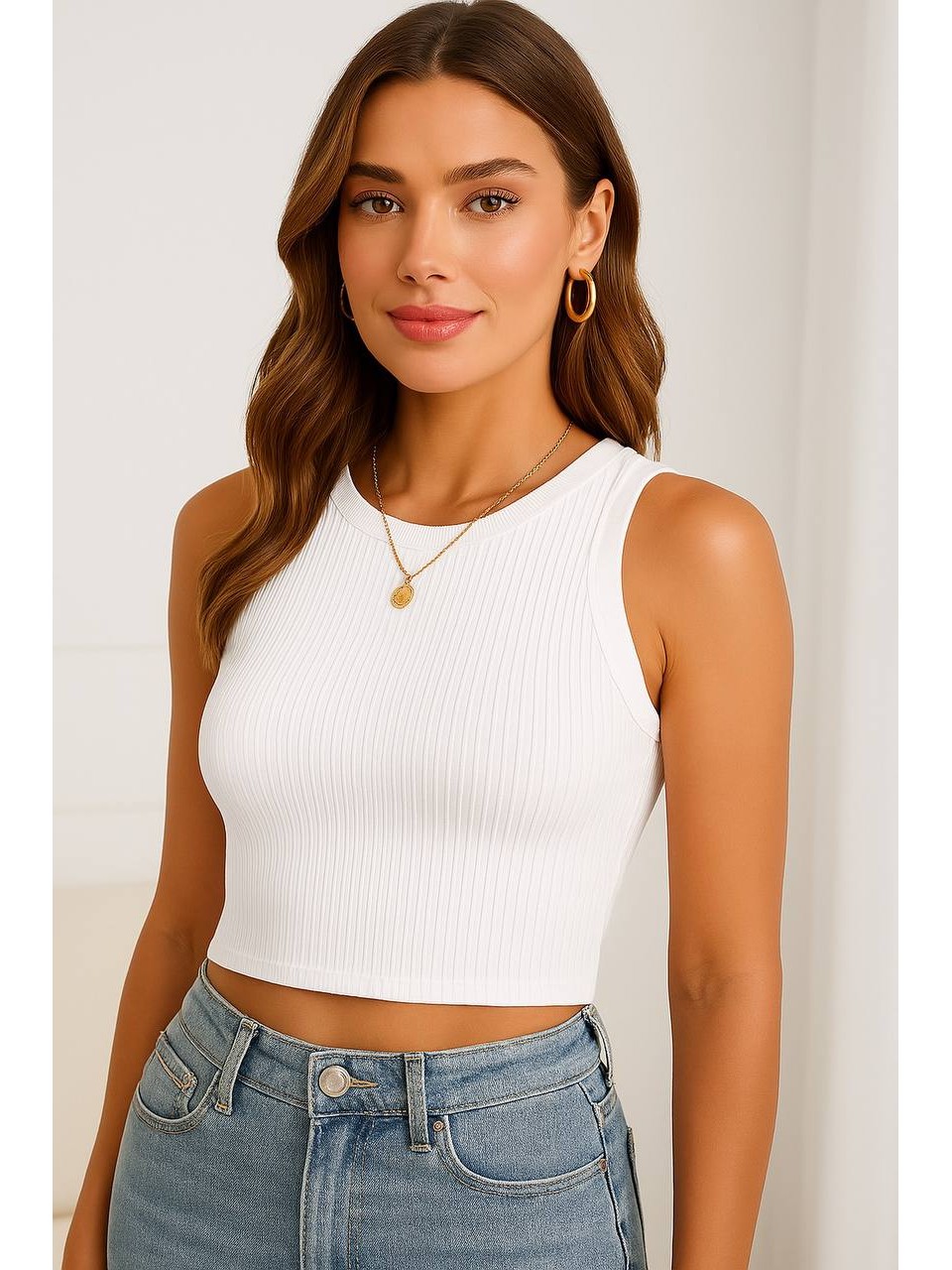 Базовий жіночий топ у рубчик бiлого кольору 32303