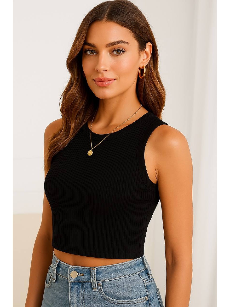 Базовий жіночий топ у рубчик чорного кольору 32302