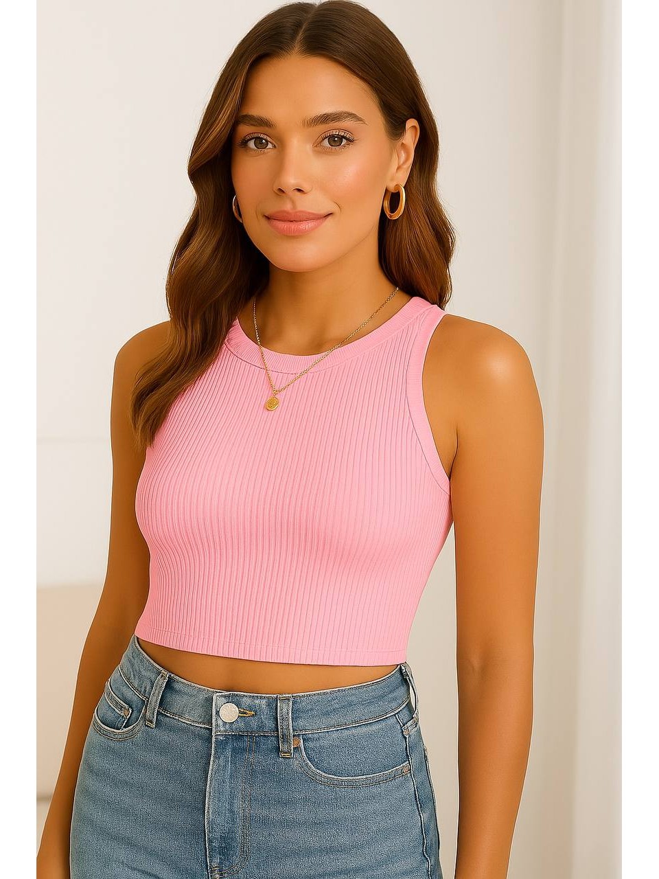Базовий жіночий топ у рубчик рожевого кольору 32301