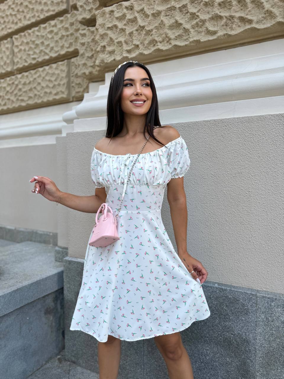 Чарівне плаття міні молочного кольору 33754