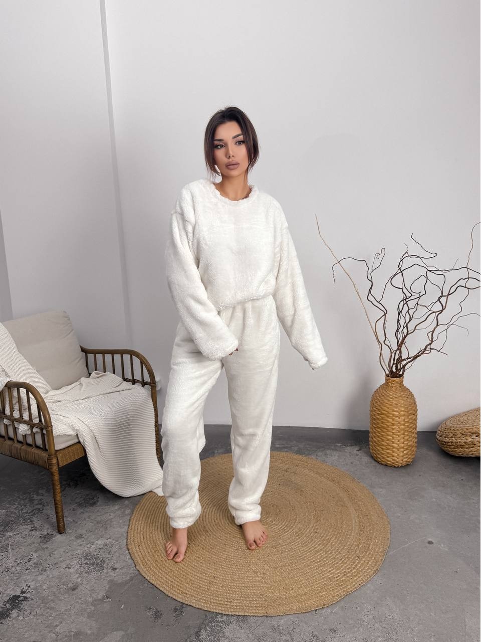 Жіночий костюм виготовлений з високоякісного матеріалу, який дуже приємний до тіла. Теплий костюм ідеально підходить для вечірнього відпочинку вдома, перегляду фільмів чи читання книг. Наш теплий домашній костюм – це не просто одяг для дому, це ваш супутник у холодну пору року. Він створений для того, щоб подарувати вам комфорт та забезпечити теплоту та затишок під час вечірнього відпочинку вдома. Костюм виготовлений із високоякісного матеріалу. Він призначений для тих, хто цінує зручність та стиль у будь-який момент. Ви можете носити його, розслабившись перед телевізором, готуючи обід, або просто відпочиваючи на дивані. Він ідеально підходить для довгих зимових вечорів та допомагає створити атмосферу тепла та комфорту у вашому будинку.