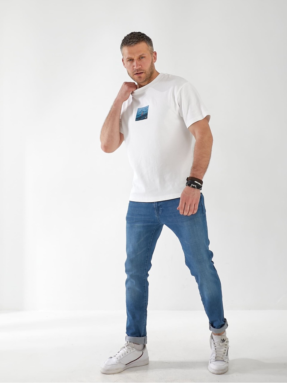 Це зручна і універсальна модель прямого крою, що ідеально підходить для повсякденного носіння. Виготовлені з тканини з додаванням еластану (98% бавовна, 2% лайкра), завдяки чому забезпечують комфортну посадку та легку еластичність. Класичний синій колір легко комбінується з різними елементами гардеробу, а міцний матеріал зберігає форму та зовнішній вигляд навіть при активному носінні.