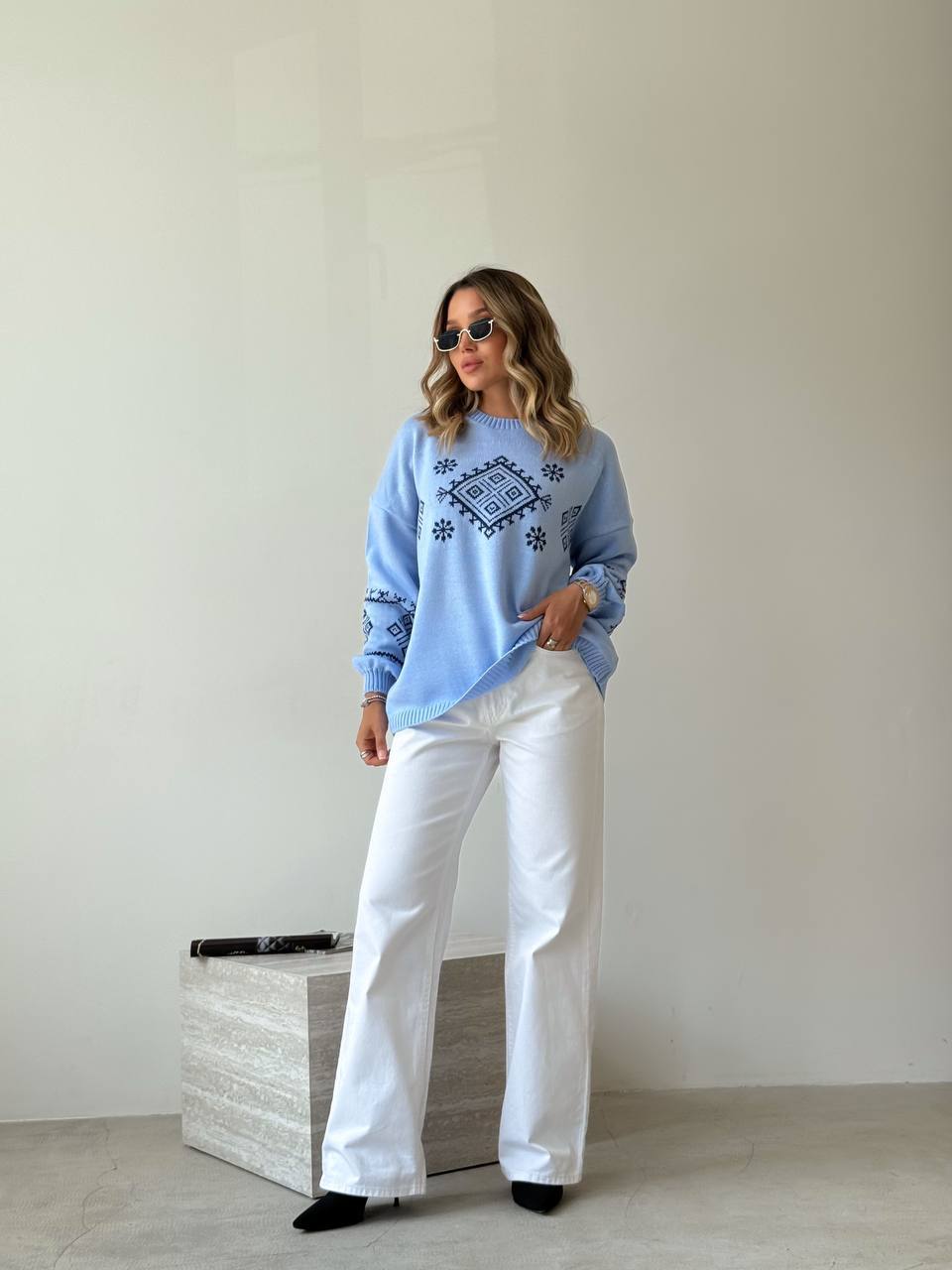Класичний жіночий светр із етнічним візерунком блакитного кольору 34181