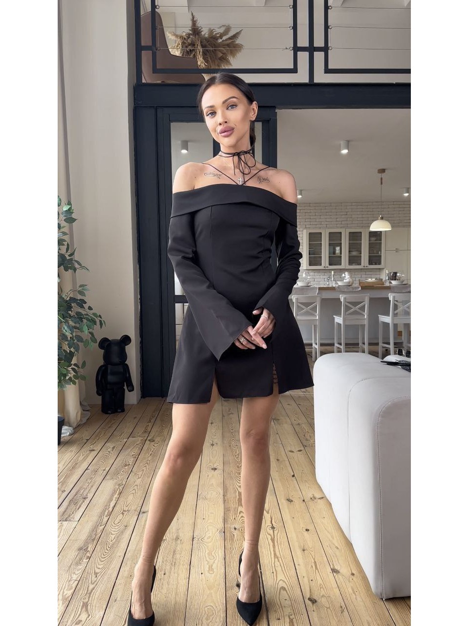 Класична сукня міні з відкритими плечима чорного кольору 31551