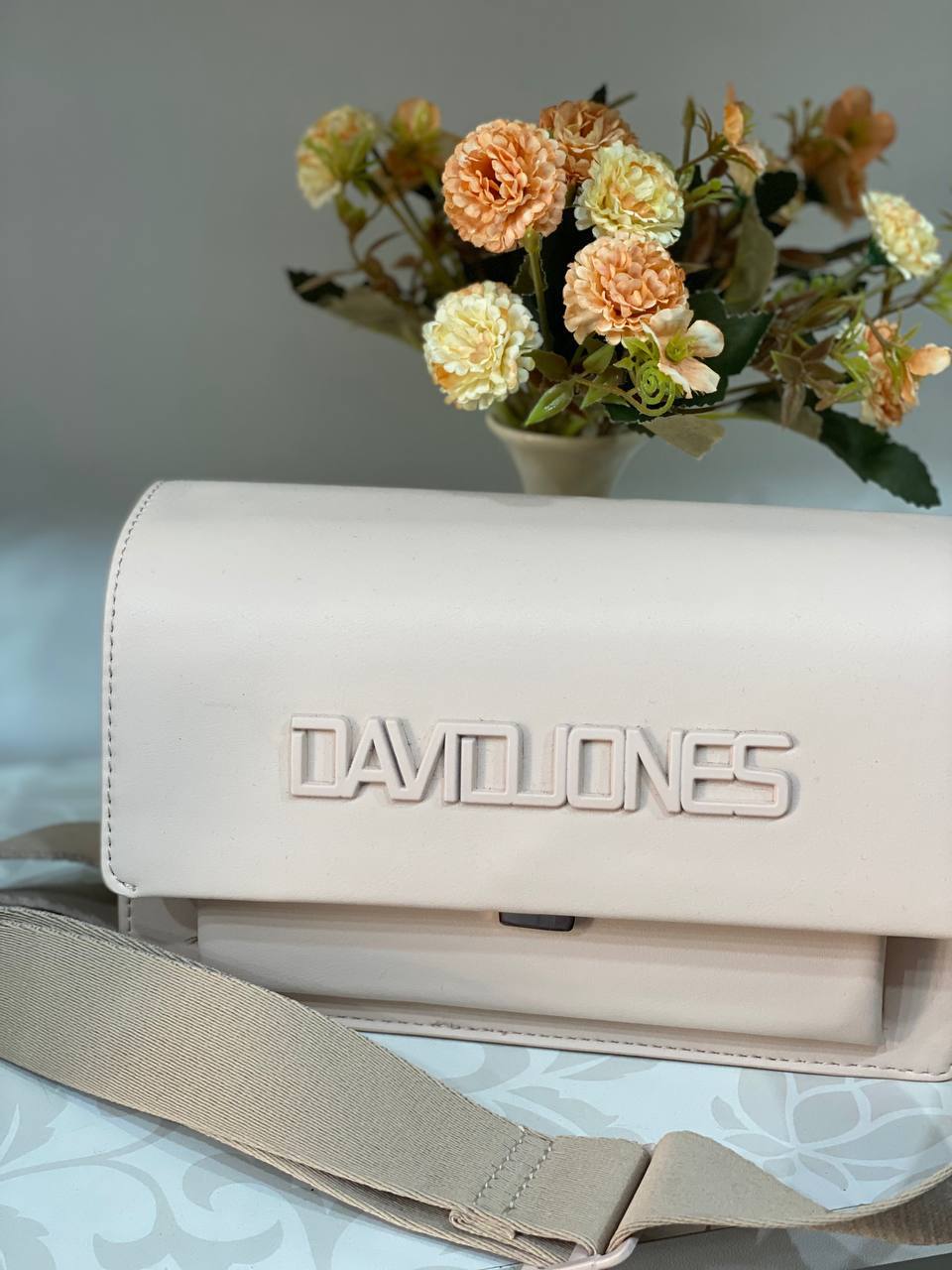 Класична жіноча сумка з еко-шкіри через плече пудрового кольору 31935