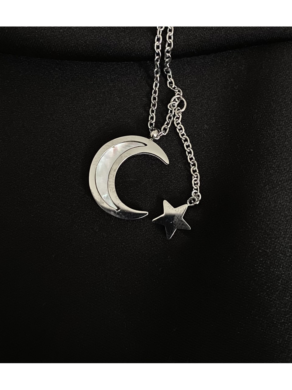 Кулон Місяць та зірка з ланцюжком срібного кольору 32423