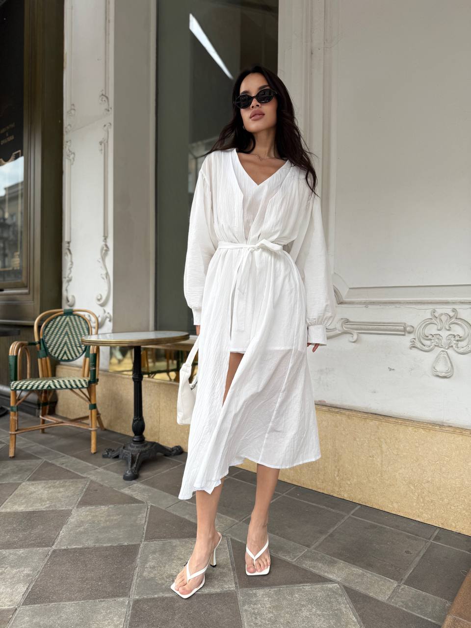 Літня сукня міні+накидка молочного кольору 33430