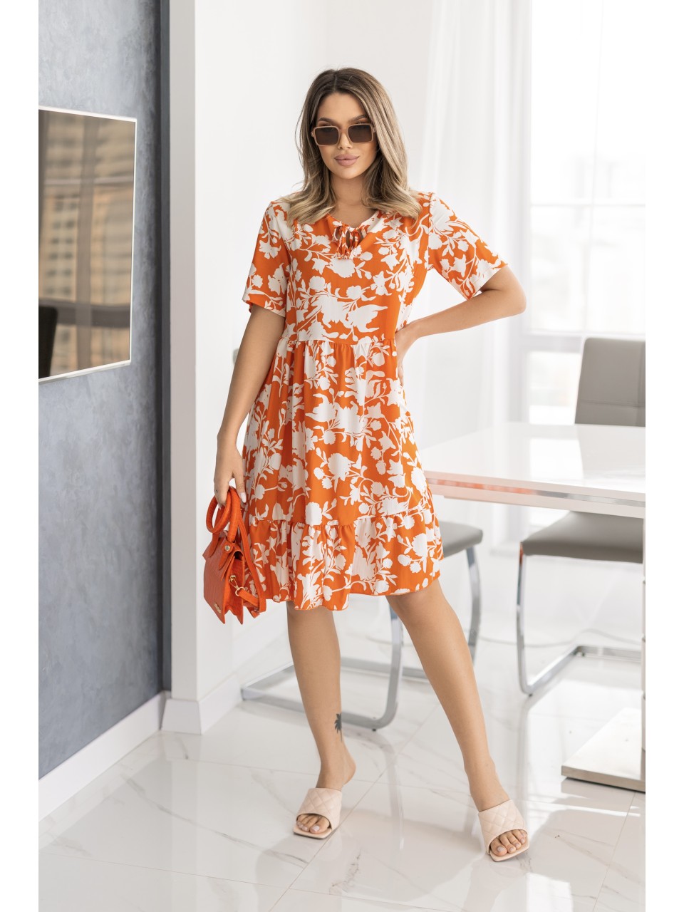 Літня сукня вільного крою в квiтку помаранчевого кольору 33215