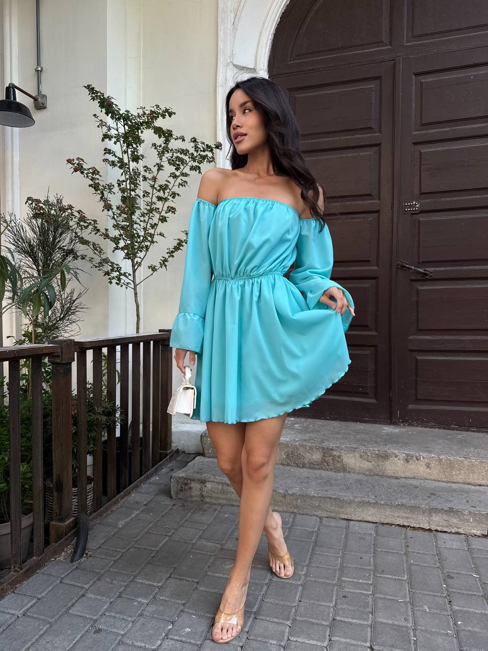 Літня сукня з відкритими плечима бірюзового кольору 33514