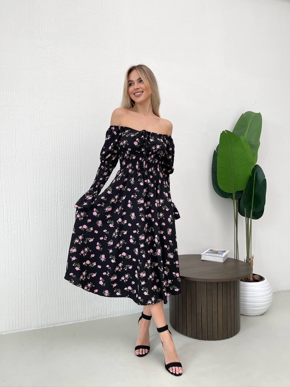 Легка сукня міді у велику квiтку чорного кольору 32147
