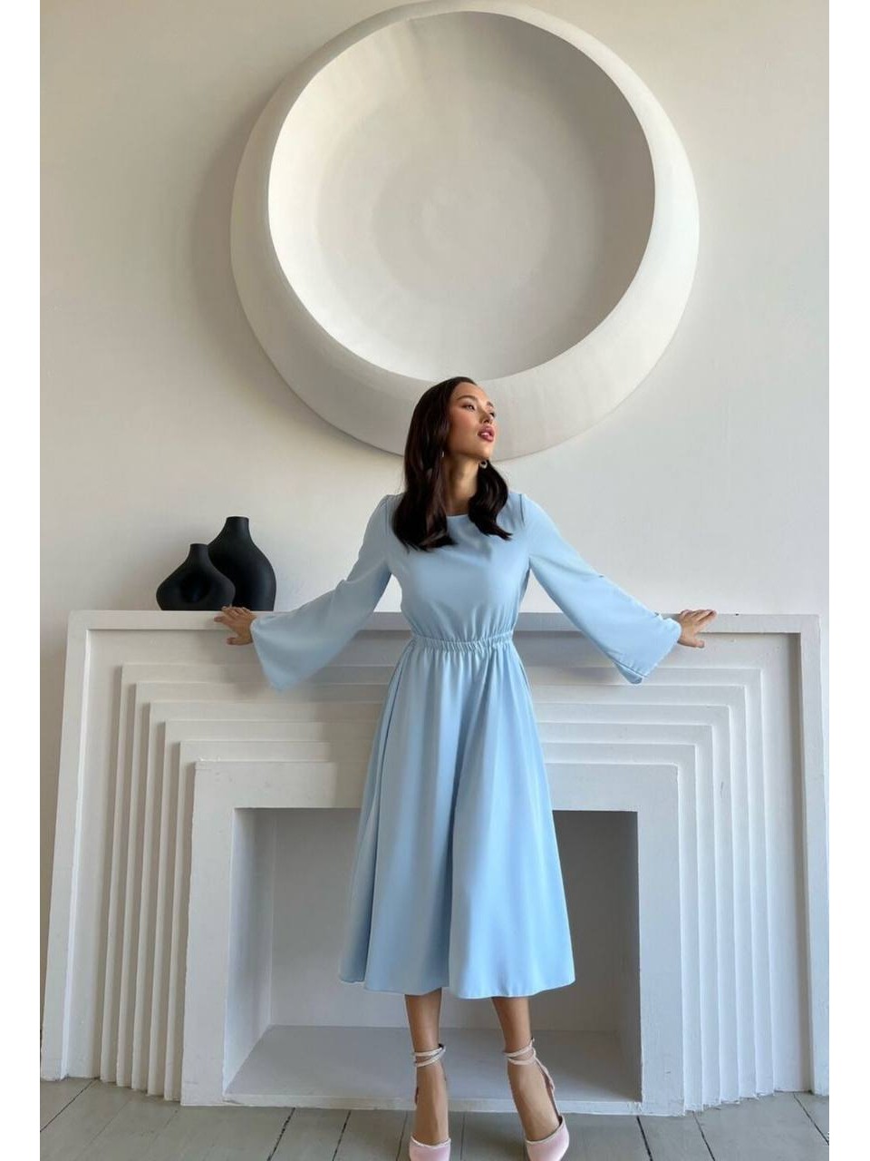Легка сукня міді з відкритою спинкою блакитного кольору 32562