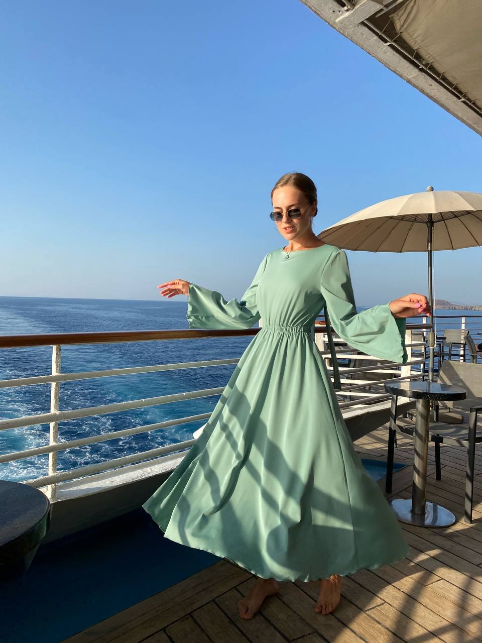 Легка сукня міді з відкритою спинкою м'ятного кольору 32560