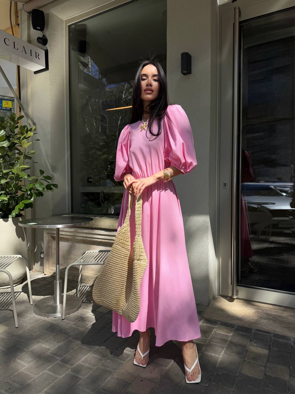 Легка сукня міді з відкритою спинкою рожевого кольору 32957