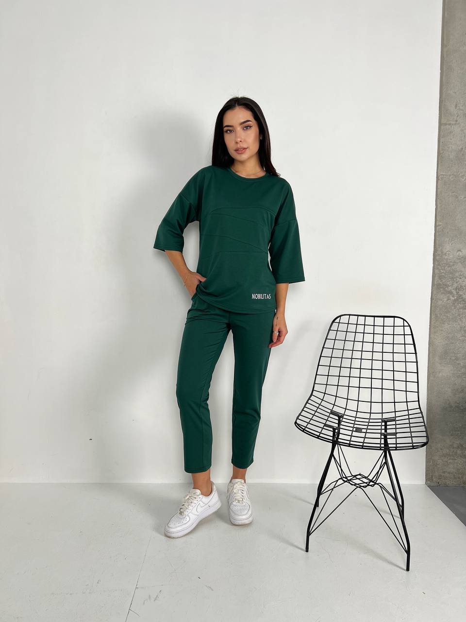Легкий костюм для жінок смарагдового кольору 30839