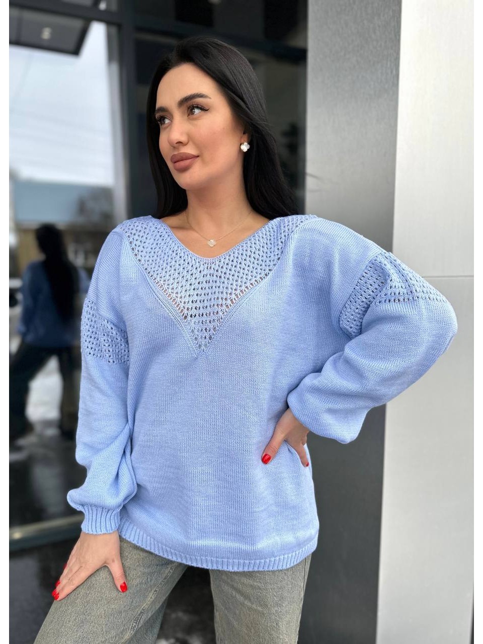 Легкий жіночий светр із вирізом блакитного кольору 31725