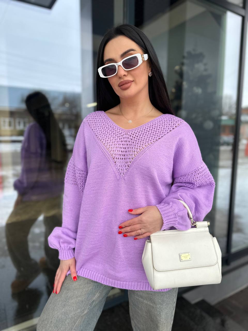 Легкий жіночий светр із вирізом бузкового кольору 31727