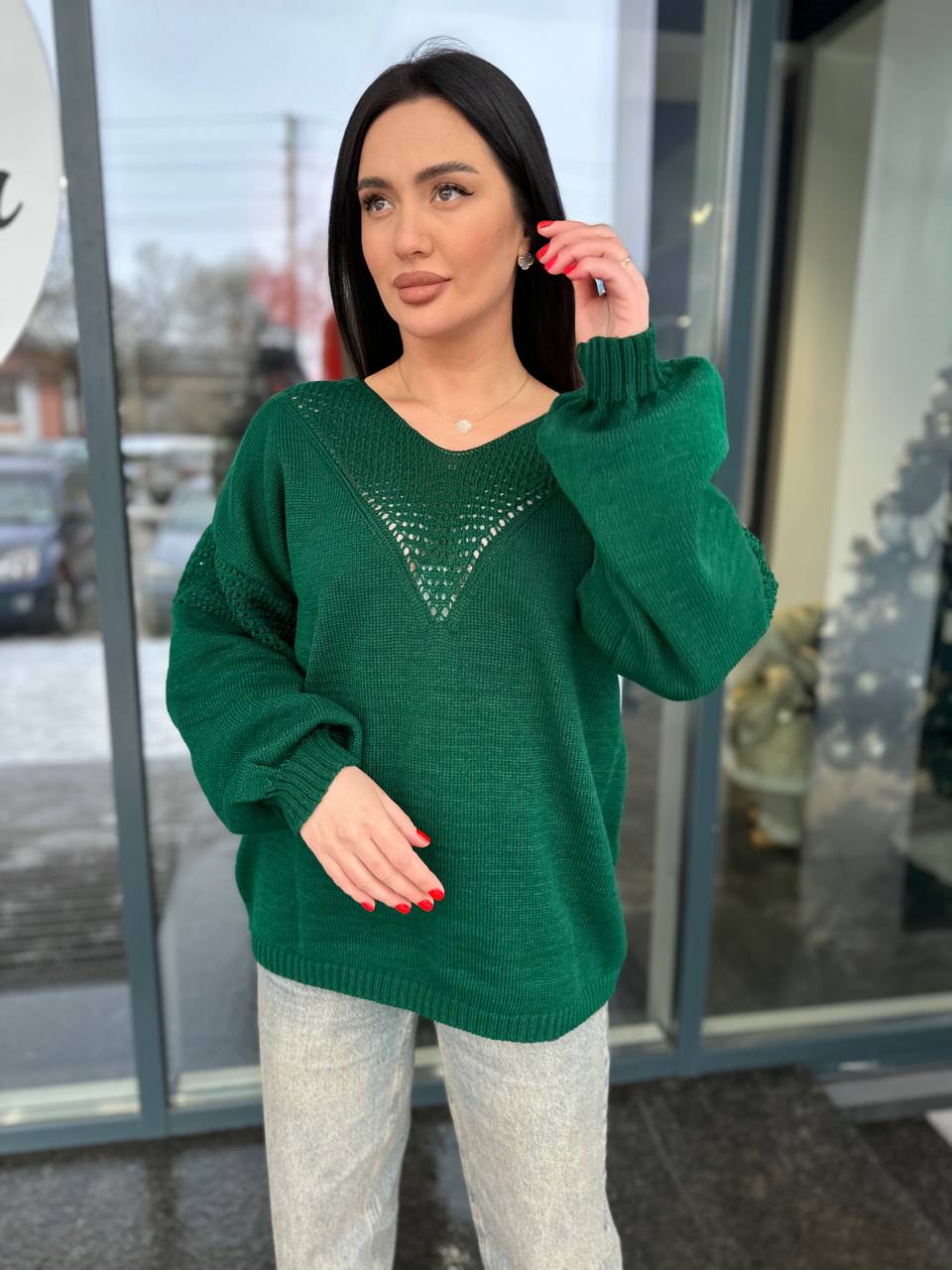 Легкий жіночий светр із вирізом зеленого кольору 31728