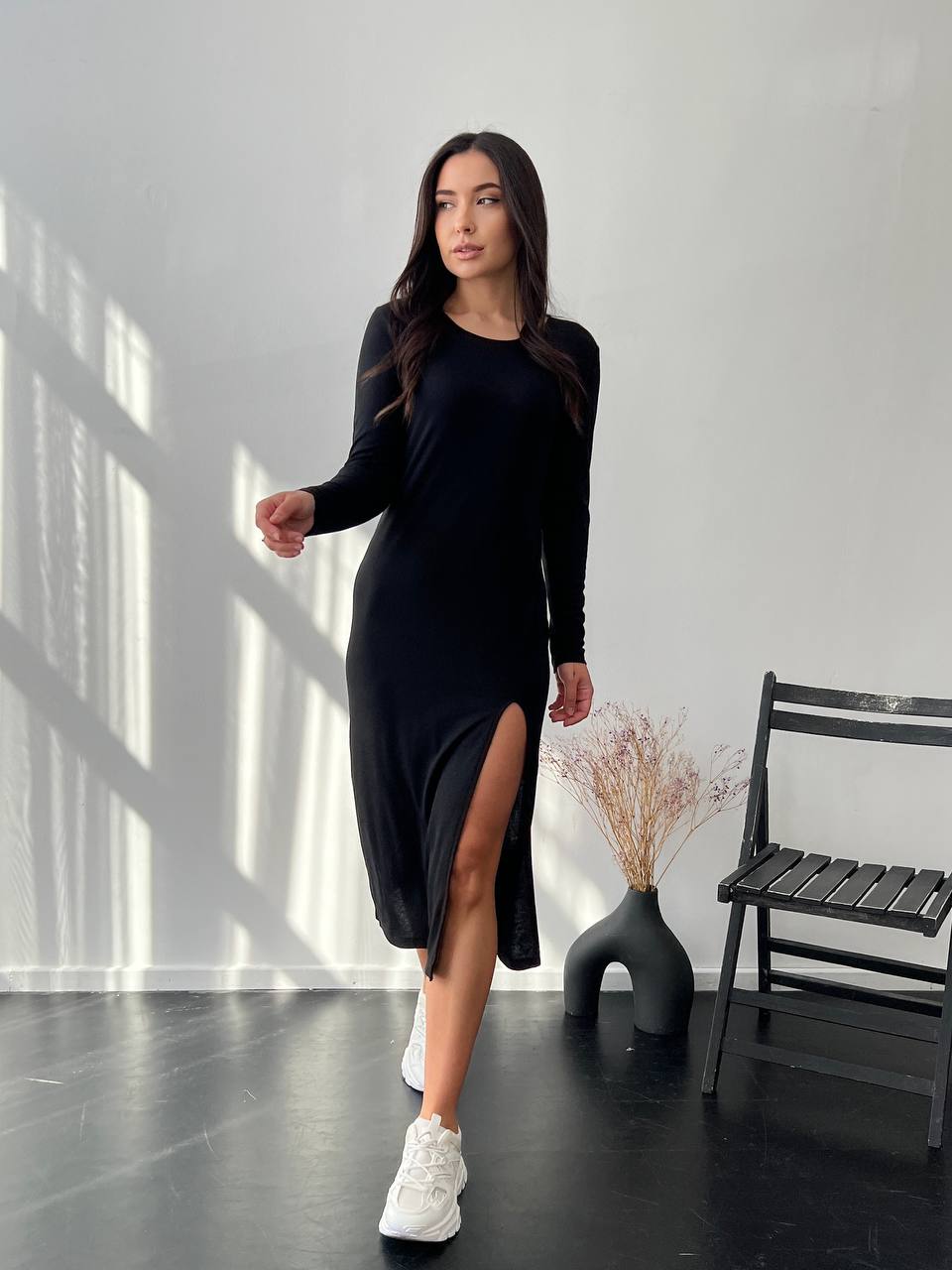 Міді сукня в рубчик, чорного кольору 24712