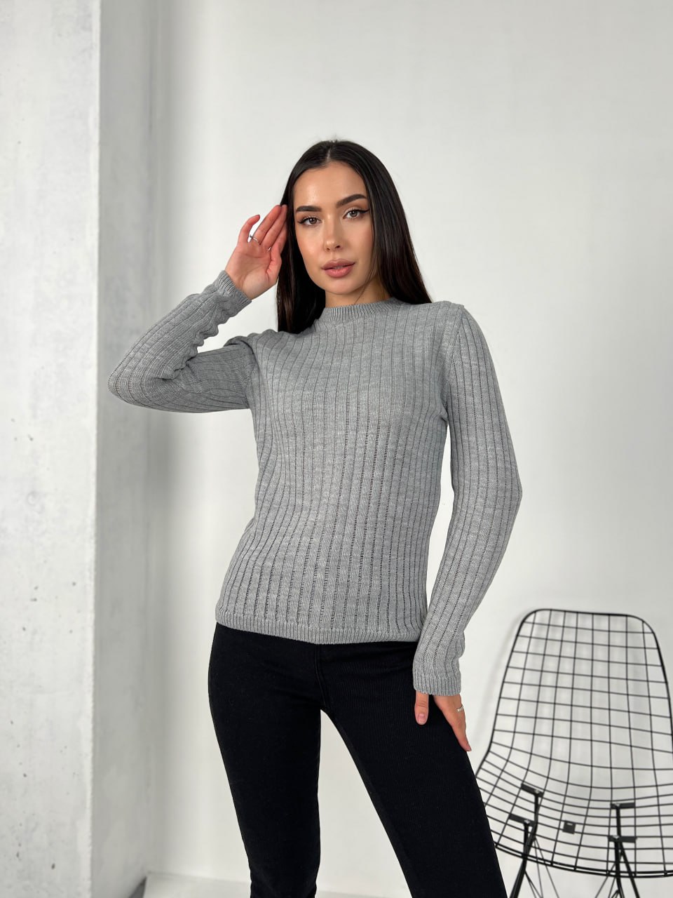 Обтягуючий жіночий светр сiрого кольору 31608