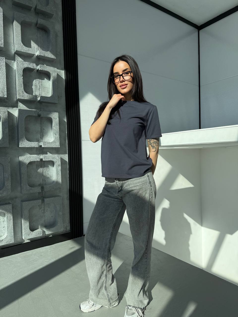 Однотонна базова футболка графiтового кольору 31803
