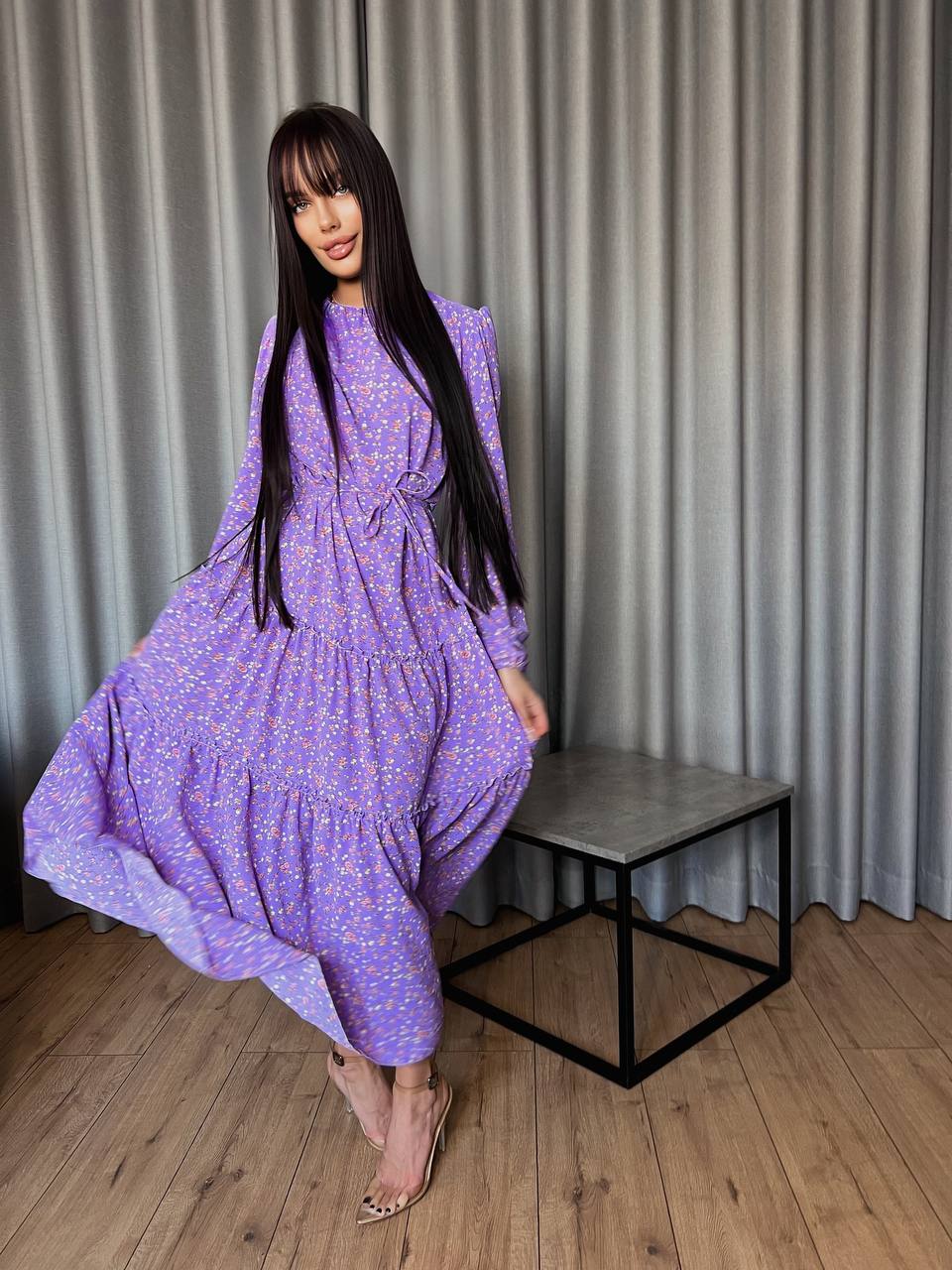 Повітряна сукня мідi у квітку бузкового кольору 31531