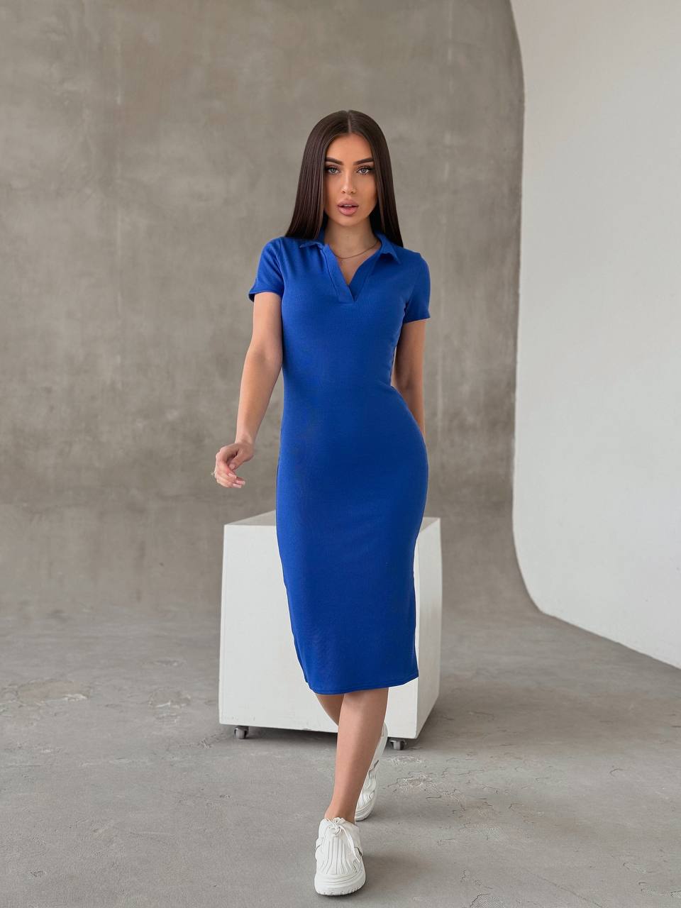 Приталена сукня-поло синього кольору 32723