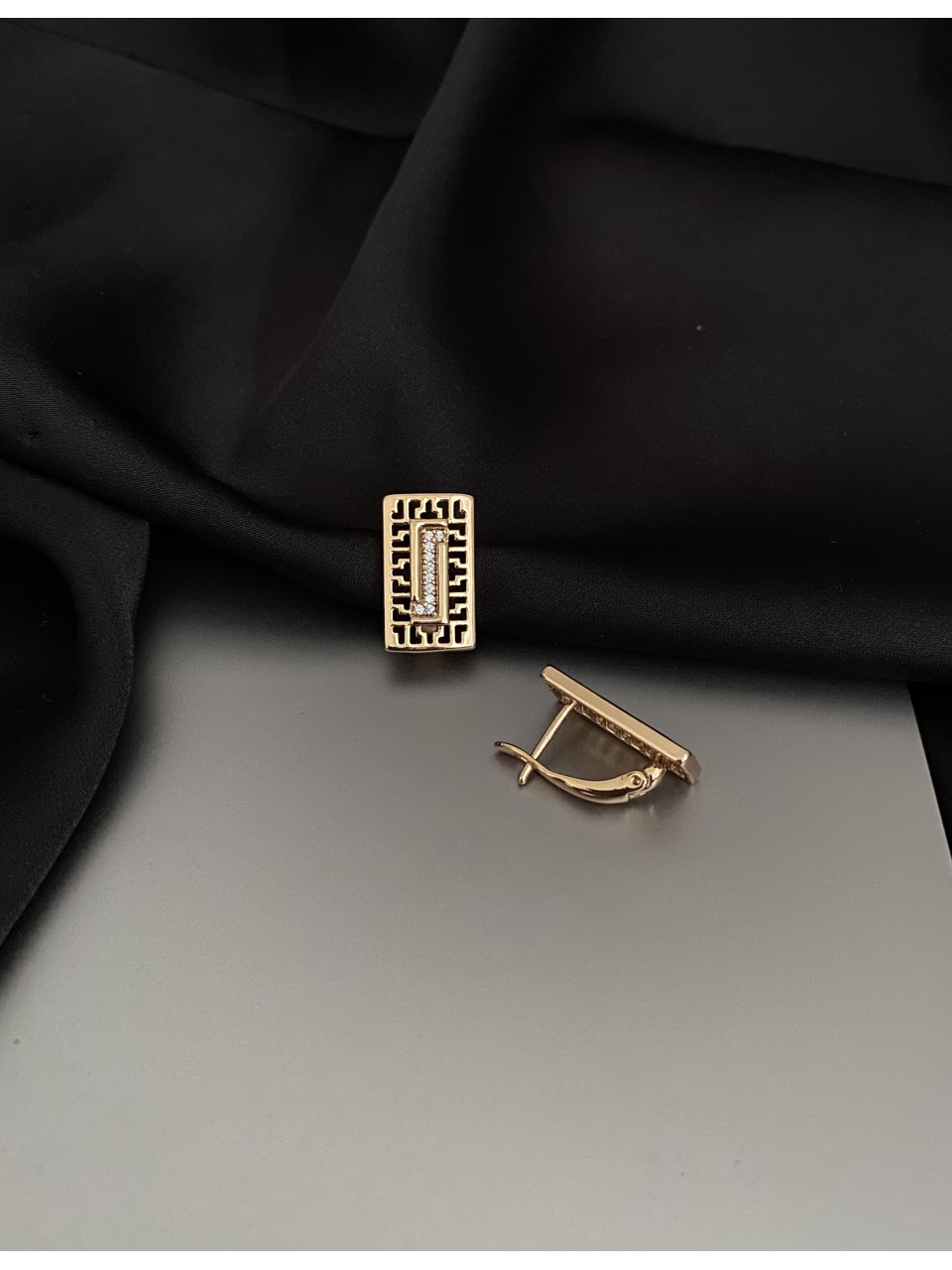 Прямокутні сережки англійський замок золотого кольору 33813
