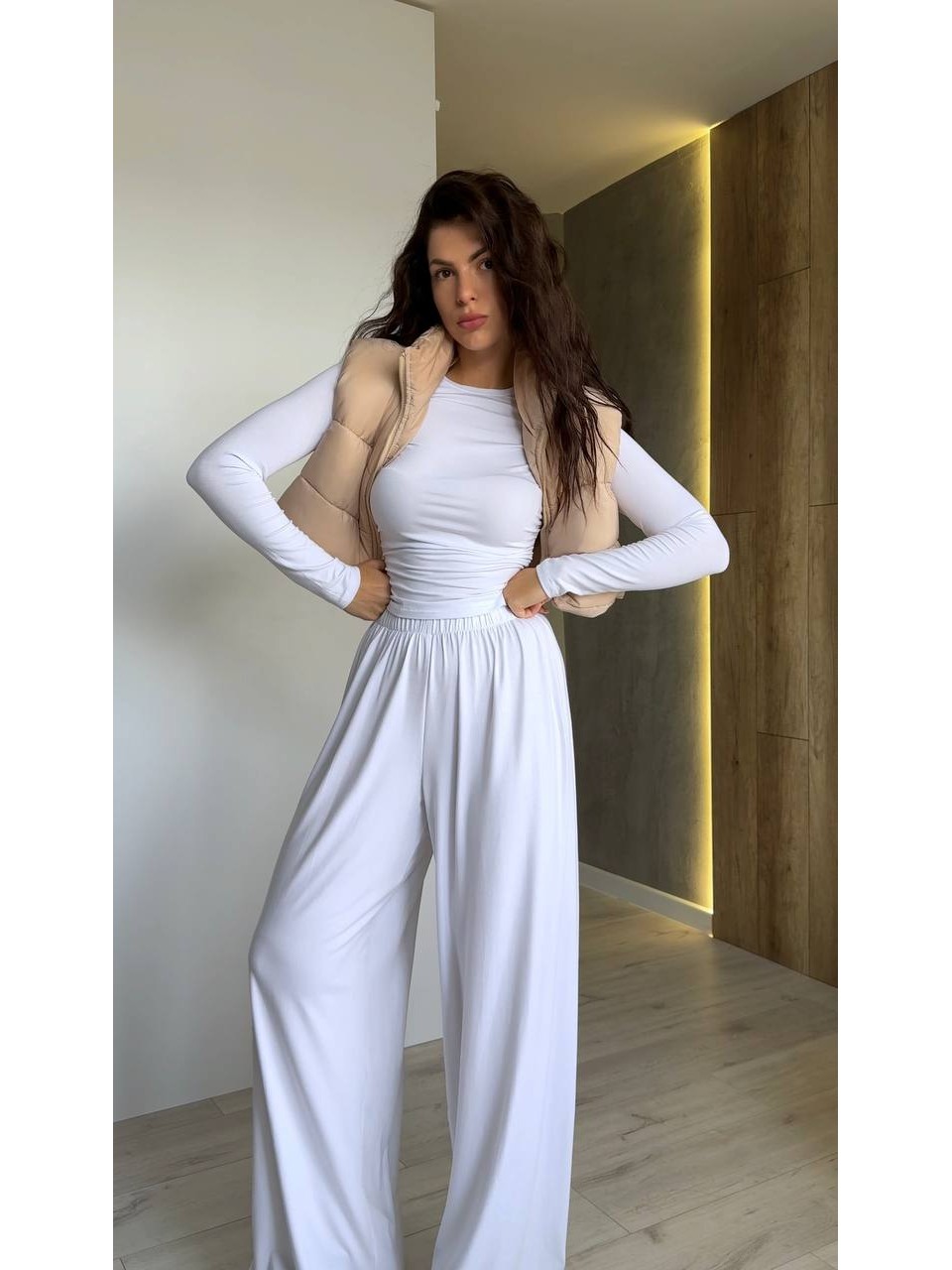 Прогулянковий жіночий костюм молочного кольору 34732