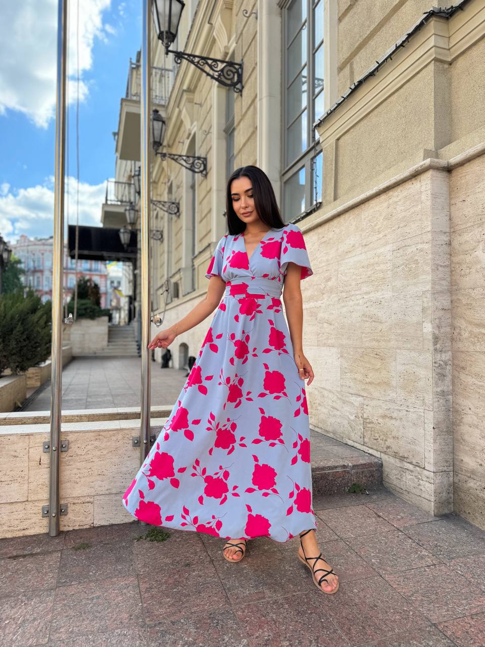 Прогулянкова жіноча сукня сiрого кольору 28368