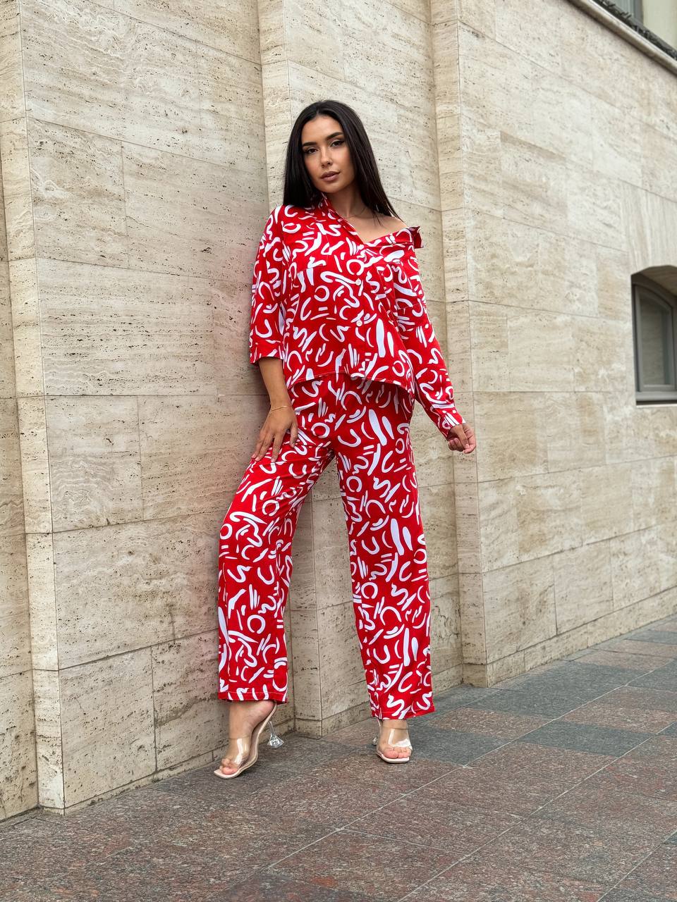 Прогулянковий костюм червоного кольору 28225