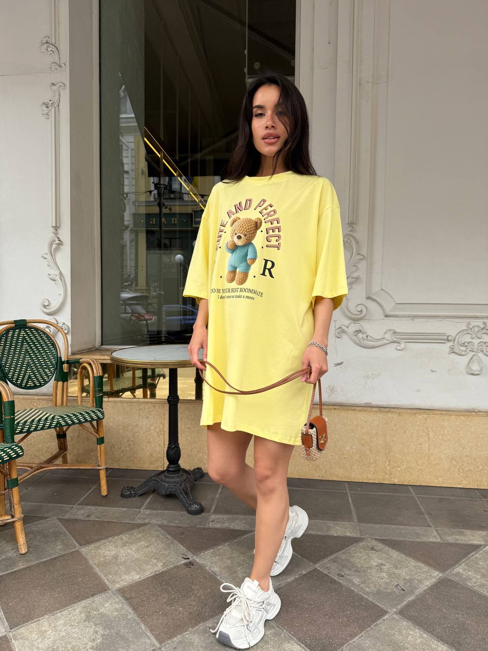 Хлопковое платье-футболка с рисунком желтого цвета 33660