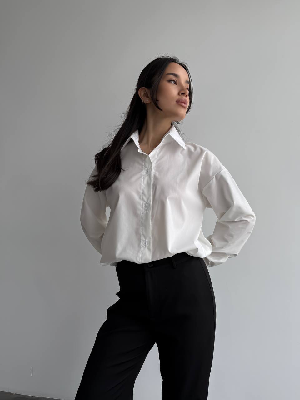 Базовая, котоновая рубашка оверсайз белого цвета 28842