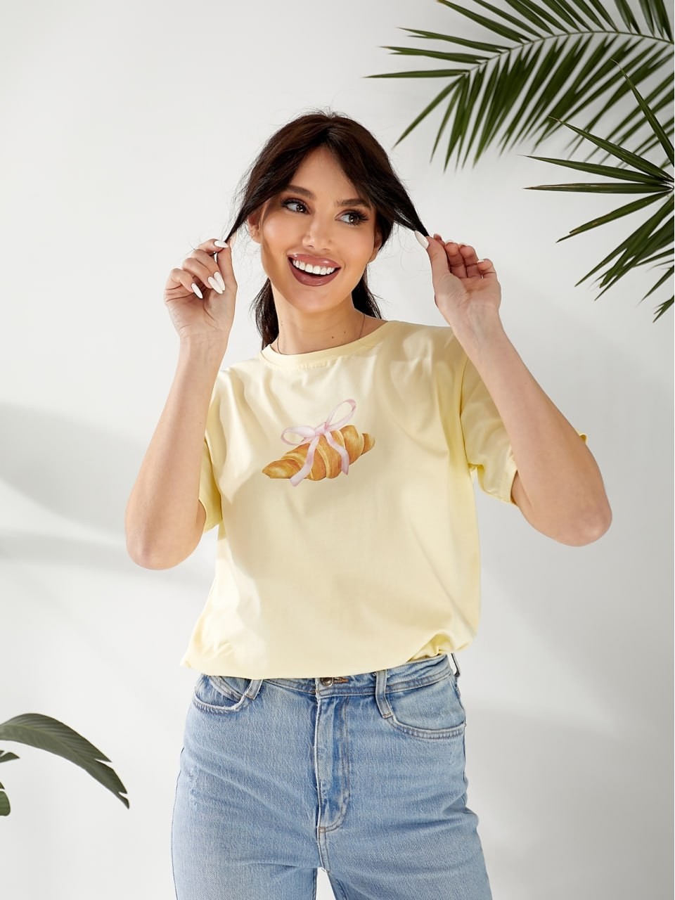 Базовая женская футболка с рисунком желтого цвета 32523