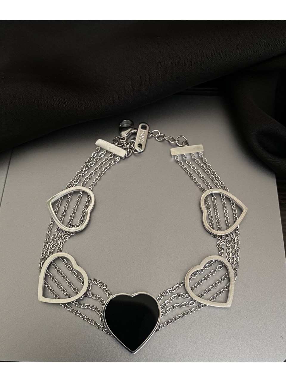 Браслет Сердца серебряного цвета замок карабин 32609