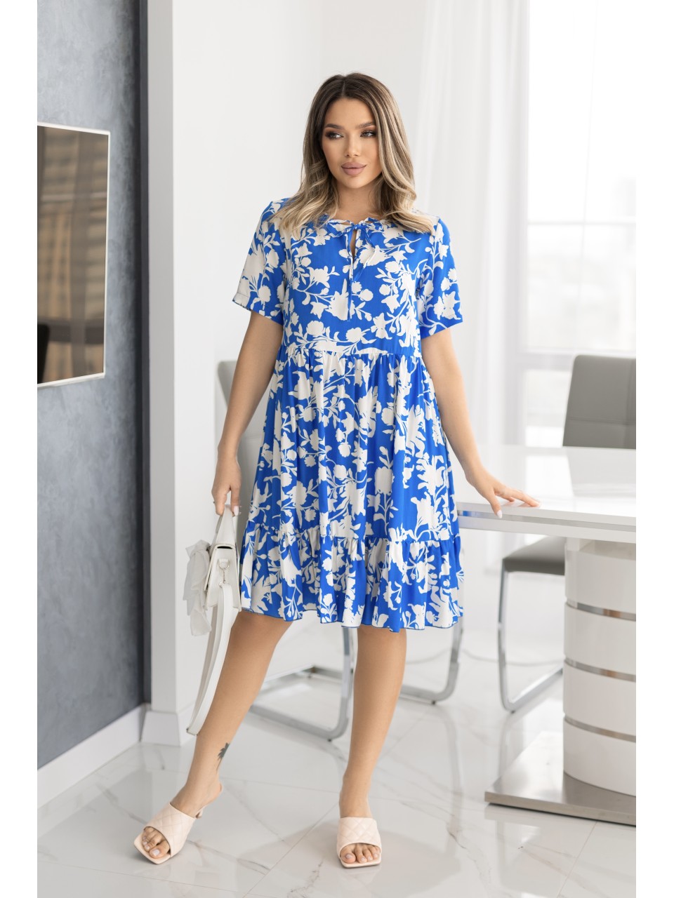 Летнее платье свободного кроя в цветок синего цвета 33217