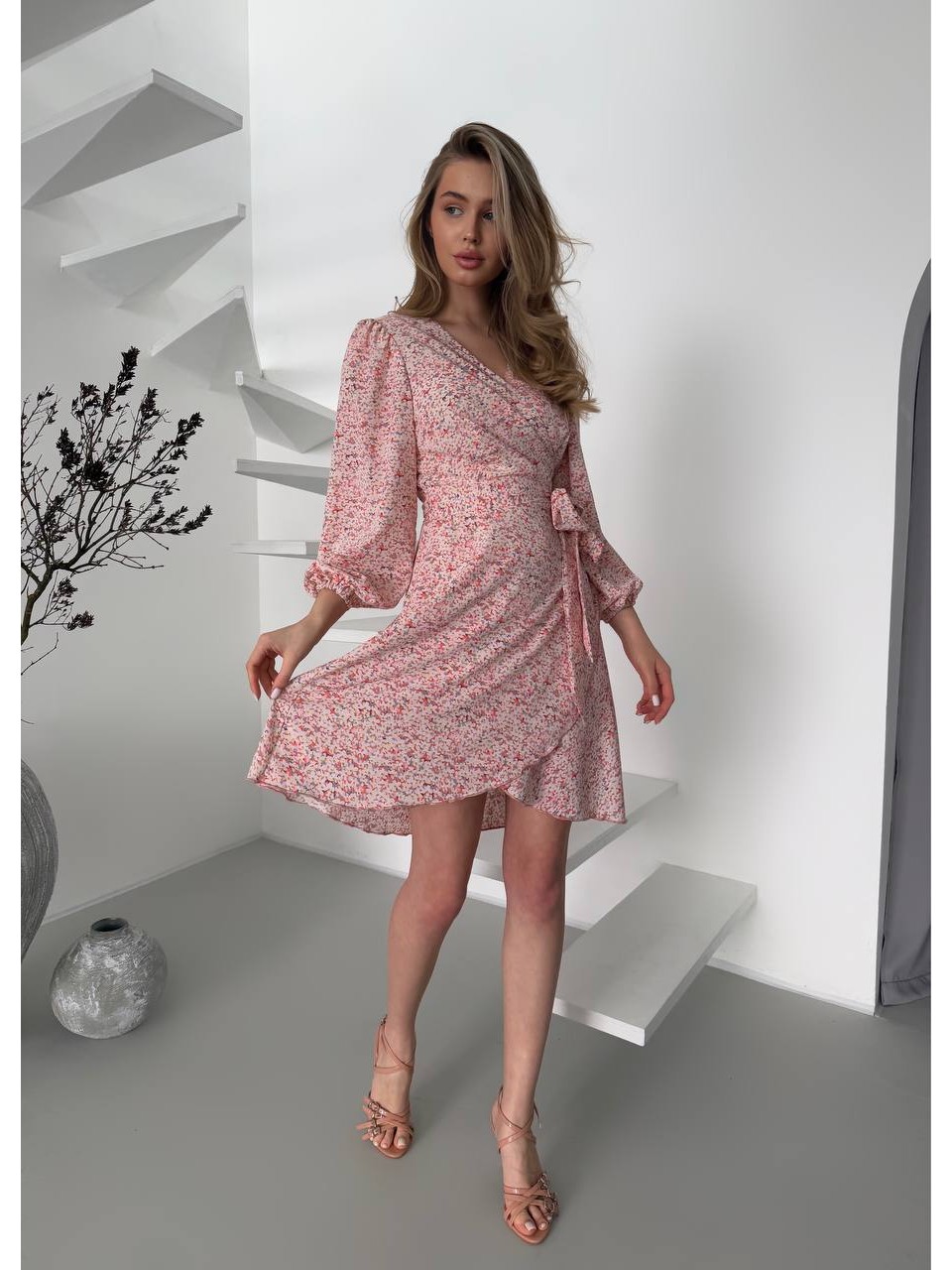 Легкое платье мини на запах розового цвета 32905