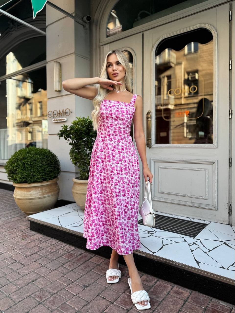 Летнее платье миди с открытой спинкой розового цвета 33638