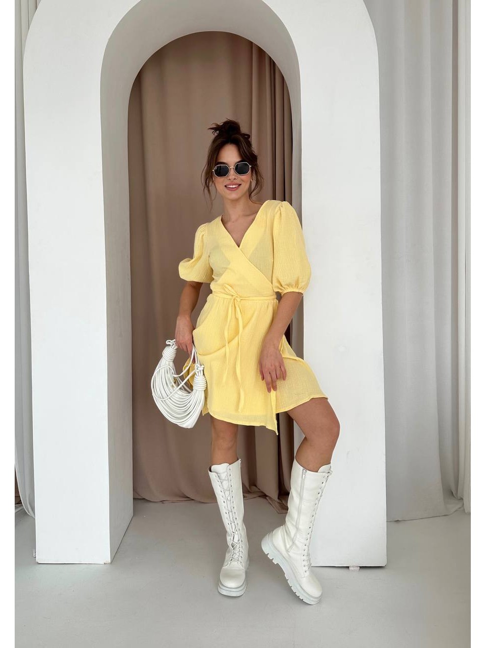 Муслиновый сарафан на запах желтого цвета 33327