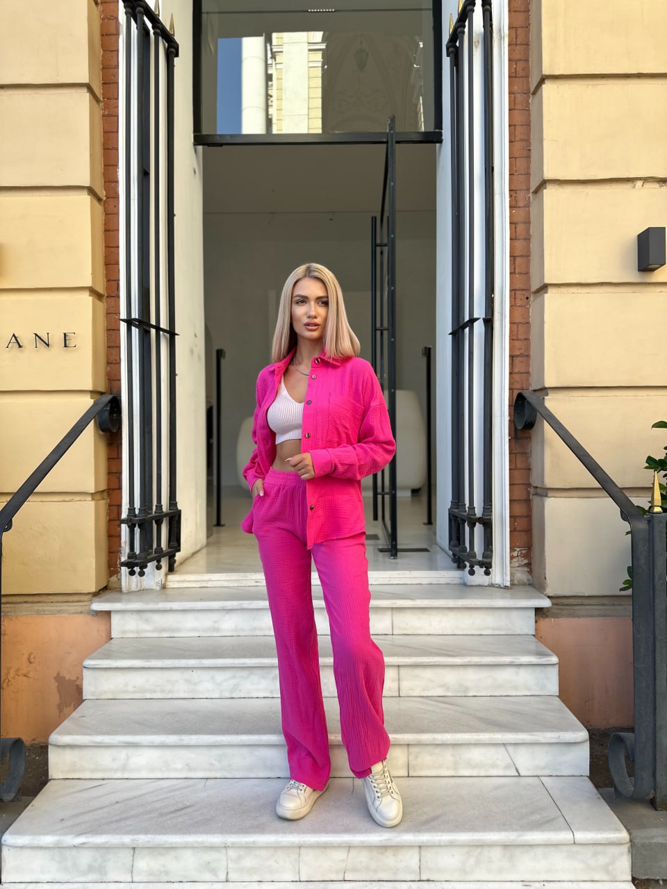 Прогулочный, муслиновый костюм двойка, малинового цвета 28671
