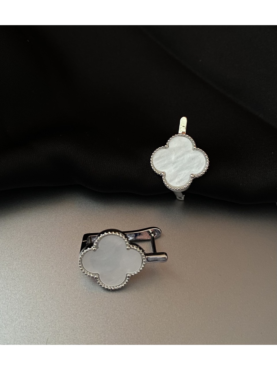 Серьги белый клевер серебряного цвета английский замок 32810