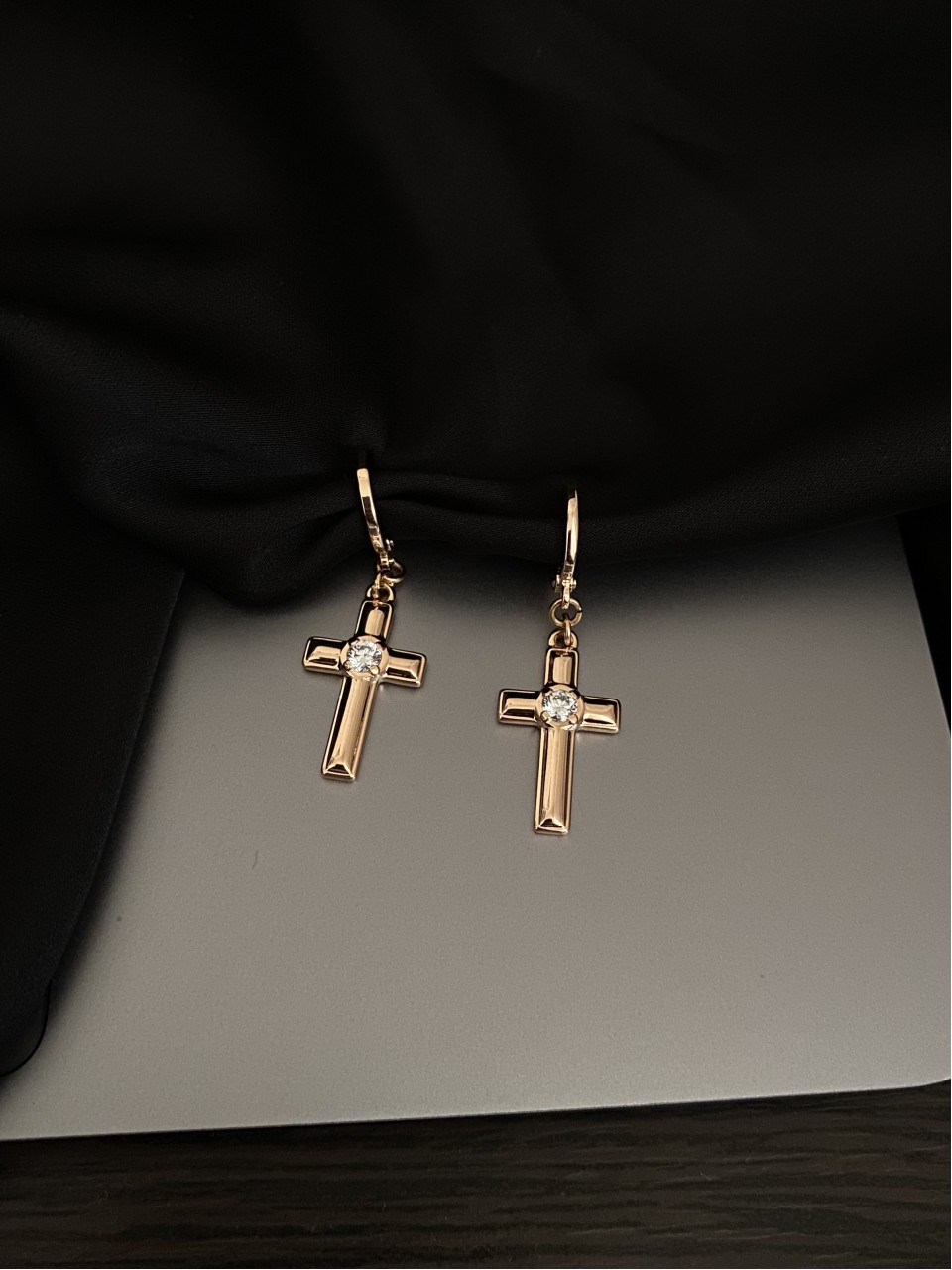 Серьги крестики с камешком круглый замок золотого цвета 33805