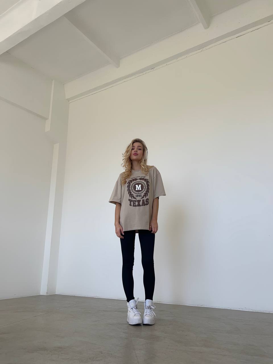 Стильная хлопковая футболка с надписью бежевого цвета 28854