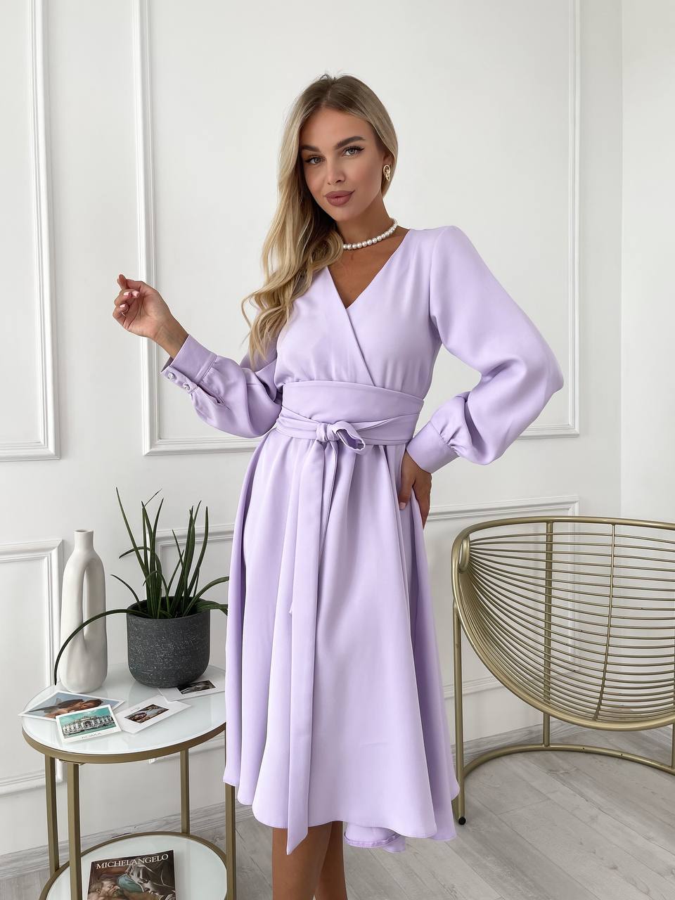 Платье миди с поясом, лавандового цвета 24228