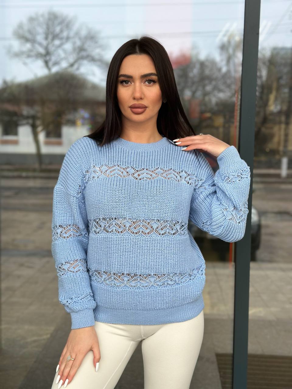 Тонкий женский свитер голубого цвета 31740